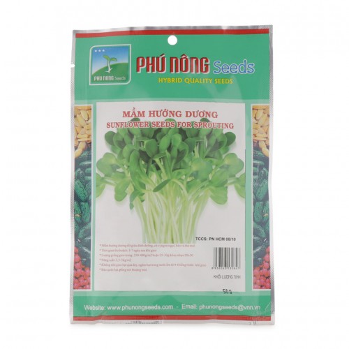 - Hạt giống mầm hướng dương Phú Nông 50g được chọn lọc kỹ lưỡng, có khả năng kháng bệnh rất cao. Đồng thời, sản phẩm có độ sạch trên 98%, giúp người dùng có thể gieo trồng dễ dàng.
