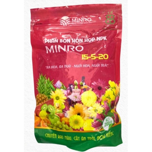 Phân Bón Minro NPK 15-5-20, Phân chuyên dùng Cho Hoa, Cây Cảnh, Giúp Cây Ra Hoa Đẹp, Lâu Tàn Vuonbabylon - Túi 200G – Chuyên dùng cho cây hoa và cây cảnh, giúp cây ra hoa đẹp, hoa lâu tàn, cung cấp dưỡng chất cân đối cho cây phát triển bền vững.