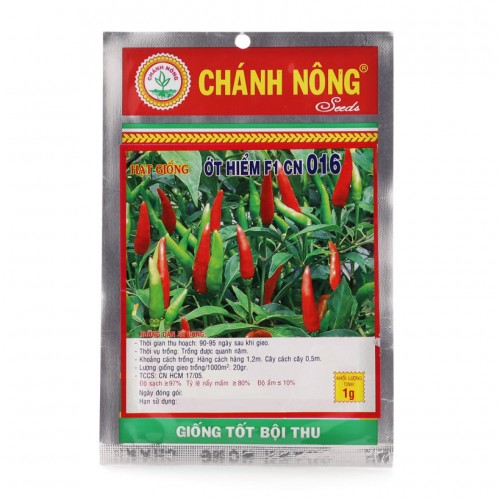 - Hạt giống ớt hiểm Chánh Nông 1g có đặc tính sinh trưởng mạnh và khả năng kháng nhiều loại sâu bệnh tốt. Sản phẩm cây trồng cho năng suất chất lượng và hiệu quả kinh tế cao.