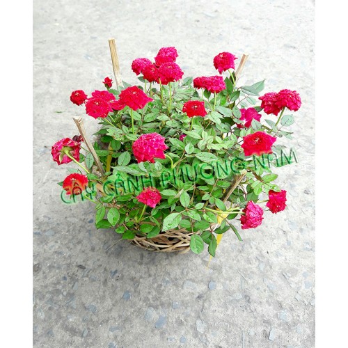 Chậu cây hoa hồng tỉ muội Phương Nam cao từ 40 - 60cm, cây phát triển tốt, cành lá mượt, có hoa sẵn.