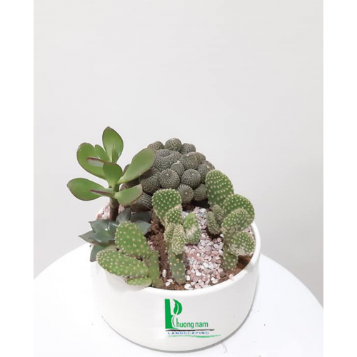 - Xương rồng được trồng trong chậu với màu sắc tinh tế và sang trọng bên cạnh những gai góc nhưng đầy sự mạnh mẽ của xương rồng đã tạo nên một điểm nhấn đặc biệt.